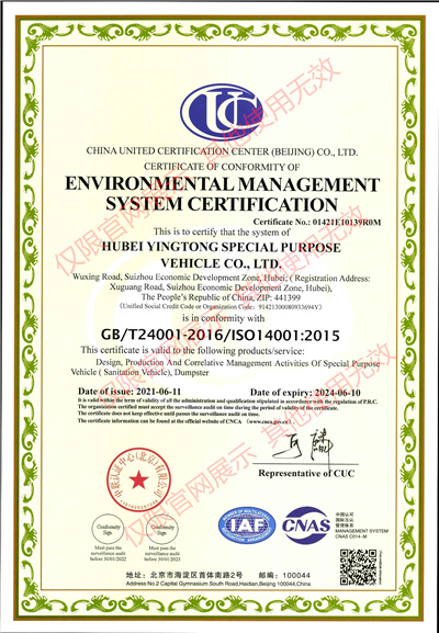 公司地址:湖北省隨州市高新區鐵北產業園文化公園北路57號 湖北盈通專用汽車有限公司