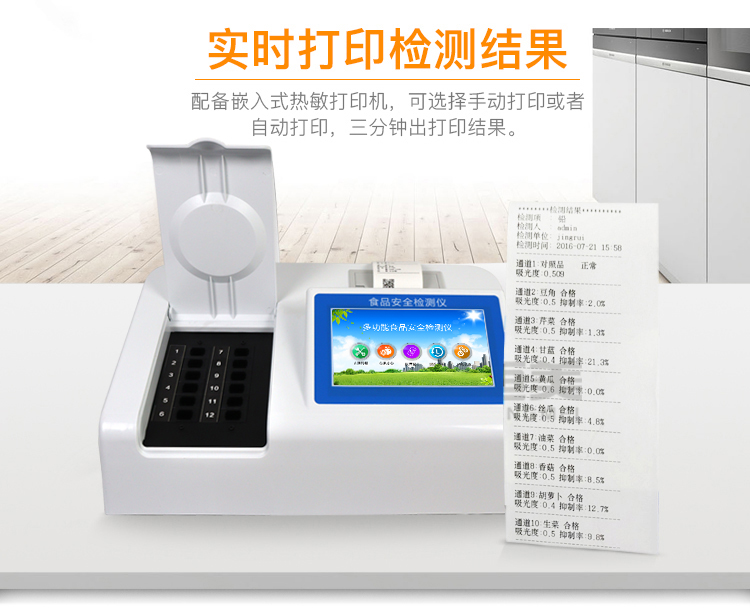 4、 配備嵌入式熱敏打印機,可選擇手動打印或者自動打印,三分鐘出打印結果。
