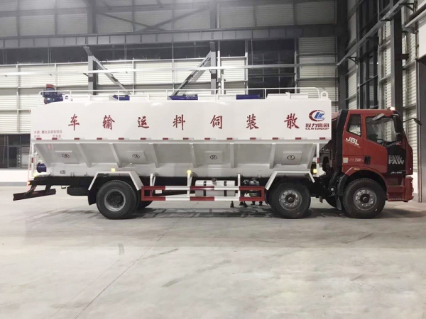 同時(shí)它也可用來(lái)運(yùn)輸某些無(wú)腐蝕性粉粒狀原料,如制藥廠粉料和糧庫(kù)周轉(zhuǎn)。散裝飼料車(chē)的飼料罐架設(shè)在卡車(chē)的底盤(pán)上,