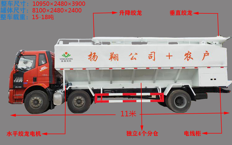 (3)料罐容積:30-34方,4個(gè)獨(dú)立倉(cāng),實(shí)載:豬料18噸,雞料21噸