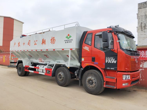 散裝飼料運(yùn)輸車(chē)主要用于從飼料廠向畜牧場(chǎng)養(yǎng)禽場(chǎng)及飼料加工用戶運(yùn)輸散裝飼料成品或飼料生產(chǎn)原糧,