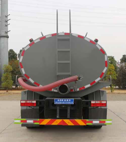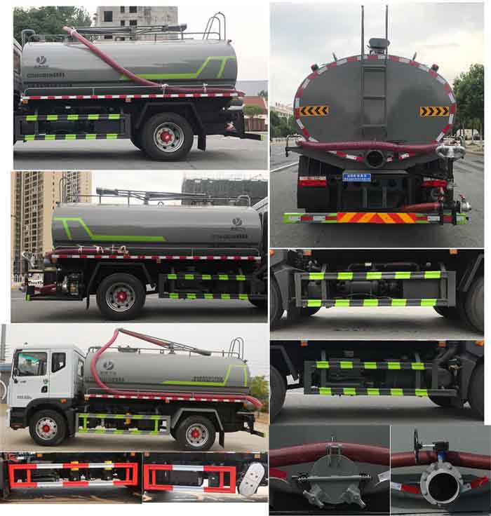 主要專用裝置:罐體及吸糞裝置,主要用于抽排運污水、糞便、泥漿等液態污物;隨底盤選裝駕駛室;罐體總容量:10.5立方米,罐體有效容積:10立方米;罐體外形尺寸(×長軸×短軸)(mm):4400×2300×1550,5000×2300×1360;整車長度/軸距對應關系(mm):8000/4500,7200/3950; 側、后防護材料均為:Q235碳鋼,連接方式均為:螺栓連接,后部防護截面尺寸(mm):120×50,后部防護離地高度(mm):450;ABS系統生產廠家,型號:焦作博瑞克控制技術有限公司,J ABS;襄陽東風隆誠機械有限責任公司,ABS/ASR-24V-4S/4M。選裝后部出口樣式;隨底盤選裝燃油箱,電瓶,尿素罐,儲氣筒左右安裝位置.選裝罐體左右及后部樣式。選裝限速裝置,限速89