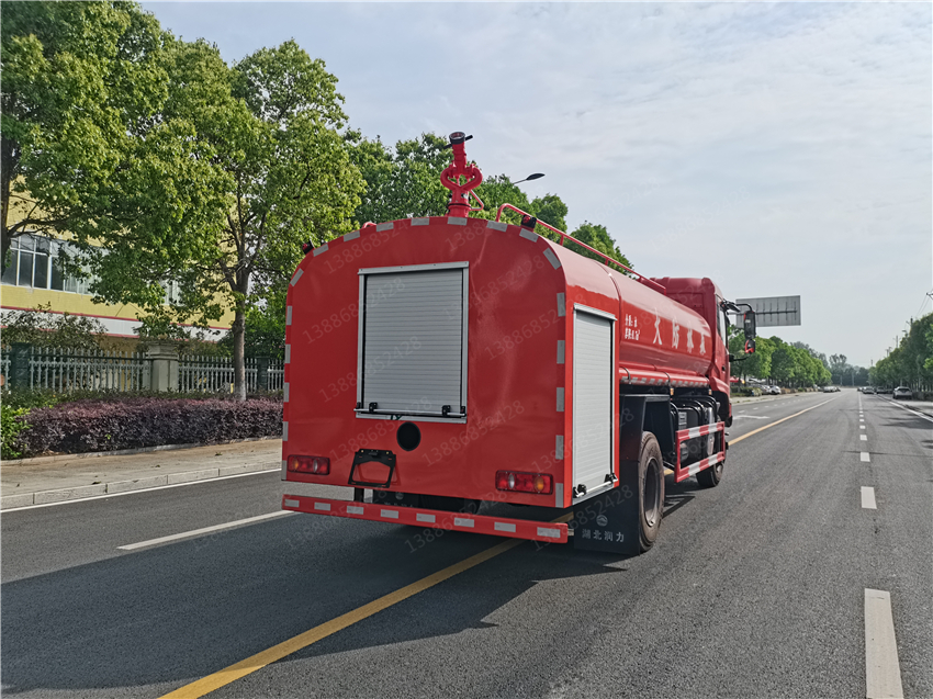 東風天錦CLT5165GPSFV6型四驅越野灑水車可做消防紅,尾部安裝消防泵,車頂部安裝消防炮,后置工作平臺和灑水炮,輸出為全夾心消防車取力器,通過傳動軸將動力傳輸給消防泵,消防泵為自動真空吸水,流量為40L/S,壓力為1.0-1.2Mpa,消防炮的射程為50米,消防灑水車又叫消防灑水車、消防灑水車、森林消防灑水車、學校消防灑水車、機場消防灑水車、社區消防灑水車、街道和鄉鎮鄉村消防灑水車等。