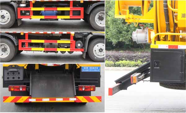 東風12方清洗吸污車,華神12方疏通吸污車,管道疏通車,市政下水道清理車,高壓清洗吸污車,該車用于下水道排污及疏通,專用裝置:罐體、吸污泵、清洗沖刷總成.該車具有舉升功能;罐體外形尺寸(罐體總長×直徑)(mm):4600×1600,邊掛清水罐尺寸(××)(mm):3900×550×1090.污水罐總容量:7.47立方米,污水罐有效容積:7.11立方米,介質:液態污物,密度800千克/立方米;清水罐總容量:3.5立方米,有效容積:3.5立方米,介質:,密度1000千克/立方米.清水罐和污水罐為獨立罐體,清洗功能時用清水罐,吸污功能時用污水罐,污水罐和清水罐不可同時滿載,兩罐不可同時使用.ABS型號及生產廠家為:3631010-C2000/東科克諾爾商用車制動系統(十堰)有限公司,J ABS/焦作博瑞克控制技術有限公司;側、后防護材料均為:Q235碳鋼,側防護采用螺栓連接,后防護采用焊接連接,后部防護截面尺寸(mm):120×50,后部防護離地高度(mm):450;隨底盤選裝油箱,尿素罐,電瓶框布置位置.選裝側面樣式.車輛后部作業燈僅在車輛作業時開啟,車輛行駛過程中不可開啟。