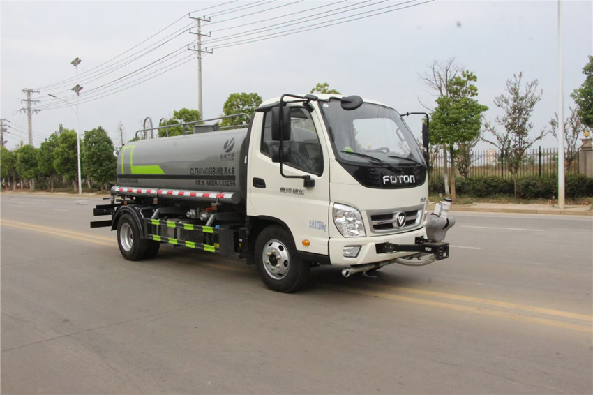 福田5方灑水車_奧鈴藍牌灑水車_福田藍牌5方灑水車,藍牌灑水車價格,該車主要用于城鄉園林綠化,路面噴灑;主要裝置為罐體及噴灑裝置;罐體總容量:4.23立方米;罐體有效容積4.03立方米;罐體外形尺寸(×長軸×短軸)(mm):3400×1600×1100.側、后防護材料均為:Q235碳鋼,連接方式均采用螺栓連接,后部防護截面尺寸(mm):120×50,后部防護離地高度(mm):430.ABS系統型號:ABS-E;生產企業:威伯科汽車控制系統(中國)有限公司.ABS系統型號:ABS-VI.E;生產企業:廣州瑞立科密汽車電子股份有限公司.僅采用底盤3360mm軸距改裝.選裝噴灑裝置樣式,選裝大工作平臺,選裝前部不帶電子霧炮.選裝電子霧炮裝置樣式.前部安裝裝電子霧炮時,前伸為500mm,整車長度為6700mm.隨底盤選裝駕駛室,選裝噴灑裝置樣式.