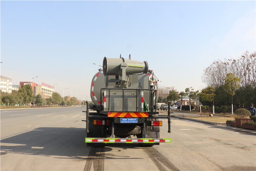 該車用途為抑塵降霾.主要裝置為罐體及噴霧裝置;罐體有效容積:9.8立方米;罐體外形尺寸(長×長軸×短軸)(mm):4000×2300×1540;側(cè)、后防護材料均為:Q235碳鋼,連接方式均為:螺栓連接,后部防護截面尺寸(mm):120×50,后部防護離地高度(mm):460;ABS型號為CM4XL-4S/4M,生產(chǎn)廠家為廣州瑞立科密汽車電子股份有限公司.隨底盤選裝駕駛室,選裝噴霧裝置樣式。 |