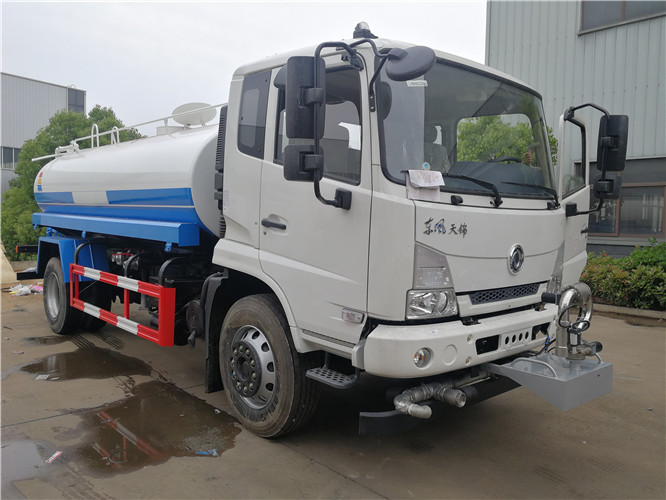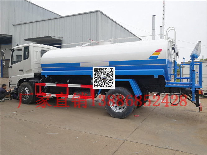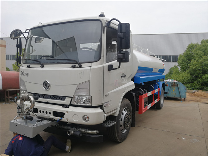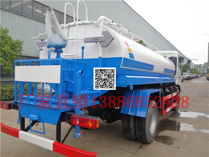 灑水車(chē)前裝有鴨嘴形噴嘴或圓錐形沖嘴,后面裝有圓柱形灑水噴嘴或蓮蓬頭噴嘴,后部有工作平臺(tái),裝配有水炮。后還可裝8個(gè)噴嘴。