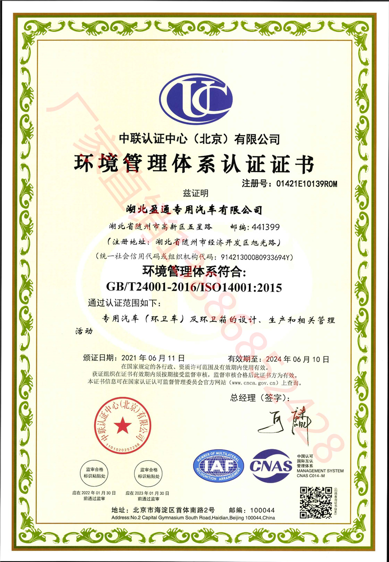 湖北盈通專用汽車有限公司| 3C認證證書原圖