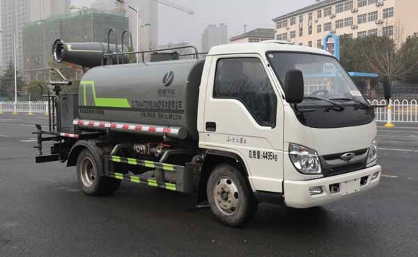 該車用途為抑塵降霾.主要裝置為罐體及噴霧裝置;罐體總容積:1.59立方米,罐體有效容積:1.57立方米;罐體外形尺寸(×長軸×短軸)(mm):2800×1650×1150;ABS系統控制方式為4S/4M,ABS型號為CM4XL-4S/4M,生產廠家為廣州瑞立科密汽車電子股份有限公司;側、后防護材料均為:Q235碳鋼,連接方式均為:螺栓連接,后部防護截面尺寸(mm):120×50,后部防護離地高度(mm):360.隨底盤選裝駕駛室,選裝噴霧裝置。