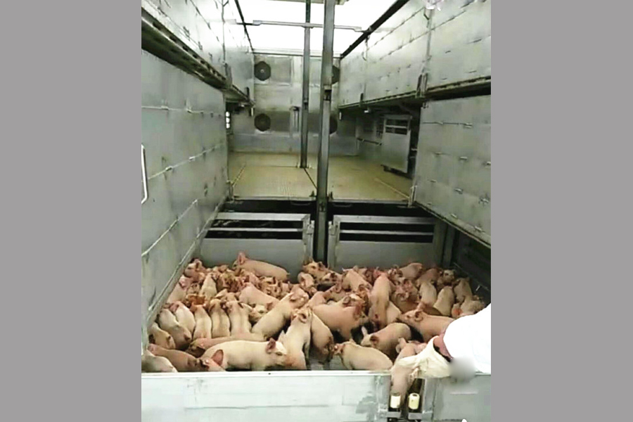畜禽運輸車是我公司在借鑒國內外產品的基礎上,結合用戶實際需求新研發的一款運輸仔豬、生豬、雞苗等畜禽的專用功能較強的運輸車輛,是我公司傾力打造的一款專門面向活禽、牲畜運輸市場的一款高端運輸車,該款運輸車旨在增強活禽、牲畜在運輸過程中的舒適度、減少死亡率,提高運輸效率,該車配備設施完善、自動化程度高。廂式畜禽運輸車可用于成品豬、生豬、豬仔、雞苗跨省運輸,全程無泄漏,有糞液收集系統箱體采用全鋁合金型材制作,質量輕、抗腐蝕性強。箱體中層安裝保溫隔板,頂部采用玻璃鋼,有效避免高溫傳導,控制箱體內部溫度。車廂內部采用全液壓可調整分層結構,二層、三層、四層16欄(根據需求選擇)飲水系統,側推拉通風滑窗,帶電子排風扇,視頻監控,溫度顯示監控,中間有隔欄,每層約承重300頭仔豬的重量。車廂后部選裝垂直液壓升降尾板,更實用!