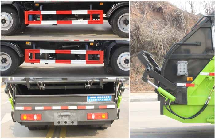 東風壓縮垃圾車,壓縮對接式垃圾車,多利卡壓縮垃圾車,壓縮垃圾站,該車專用裝置為垃圾箱體及液壓系統裝置,主要用于垃圾的收集,轉運作業.選裝無上料裝置時無后伸,選裝密封斗裝置,擺臂裝時,后伸280mm,選裝翻轉機構,翻掛桶,三角斗時,后伸380mm.側防護材料均為:Q235碳鋼,連接方式均為:螺栓連接,后部防護由專用裝置代替,后部防護離地高度(mm):500.ABS型號及生產廠家為:3631010-C2000/東科克諾爾商用車制動系統(十堰)有限公司,J ABS/焦作博瑞克控制技術有限公司.發動機型號/油耗值(L/100km)對應關系:YCY30165-60/19.7,D25TCIF1/20.1.該車型可選裝直接供電式ETC車載裝置.僅采用3800mm軸距底盤改裝.選裝樣車側面樣式. |