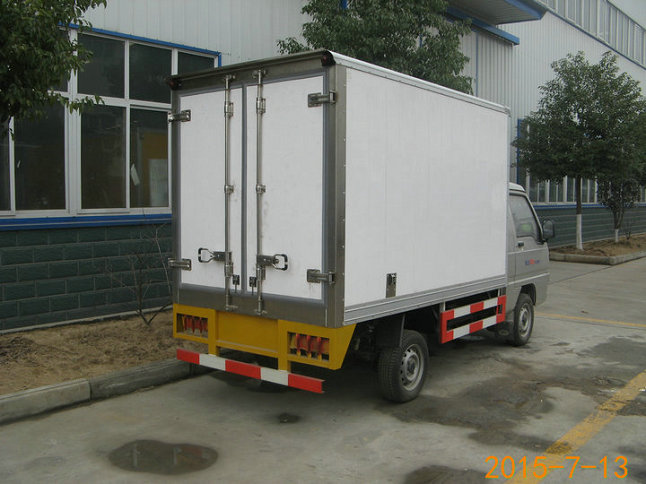 冷藏車廂體:采用國標A級聚氨酯保溫材料,厚度為8厘米,廂體內外采用玻璃鋼材質全包裹。不銹鋼鎖件。包角、包邊鋁合金型材。底盤采用高強度花紋鋁板定制。可選裝肉鉤導軌,和底部通風槽