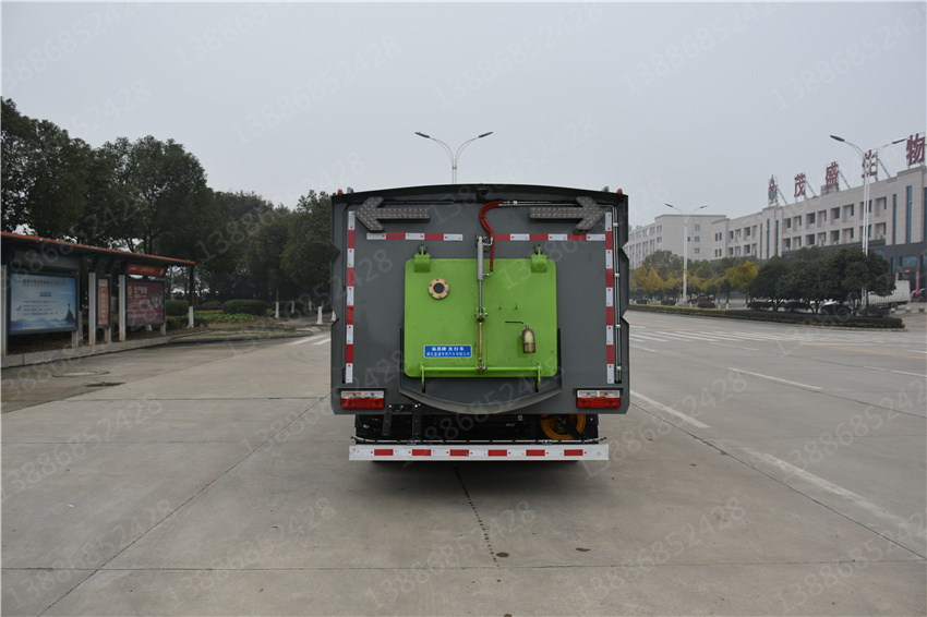 多利卡8方洗掃車,國六8方洗掃車,高壓清洗掃路車,洗掃車廠家報價,該車用于清掃、清洗路面垃圾,主要裝置為箱體及洗掃系統;隨底盤選裝駕駛室;ABS型號/廠家:ABS型號:ABS/ASR-24V-4S/4M,廠家:襄陽東風隆誠機械有限責任公司;側面防護專用裝置替代,后防護裝置材料為:Q235碳鋼,連接方式為:螺栓連接,后部防護截面尺寸(mm):120×50后防護離地高度為400mm.選裝限速裝置時最高車速為:89km/h