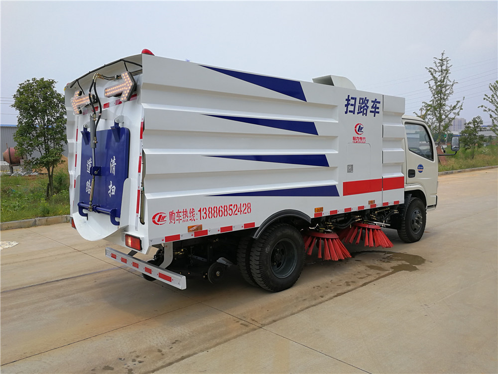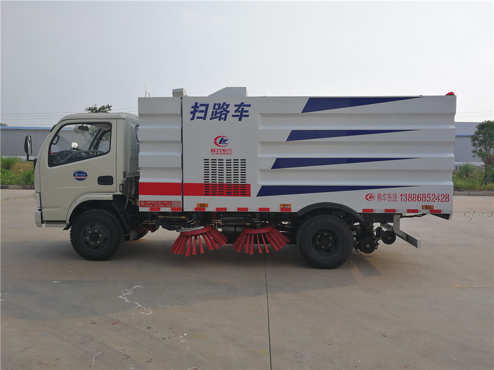 該掃路車采用東風(fēng)多利卡二類底盤改裝,加裝副發(fā)動機、風(fēng)機、清水箱、垃圾箱、左右立掃、掃盤降塵系統(tǒng),液壓系統(tǒng)、專用裝置電控系統(tǒng)和副車架等改裝而成。