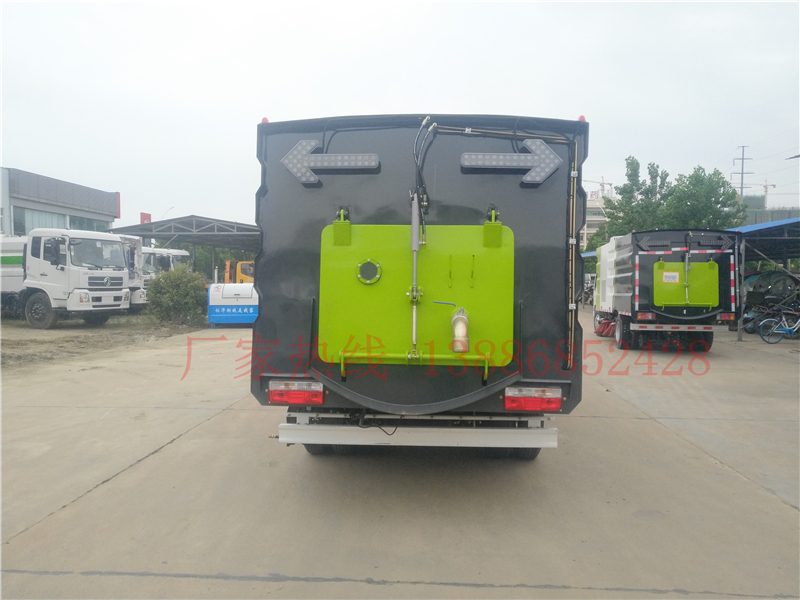 廂體采用傾翻卸料,帶高壓沖洗自潔裝置。垃圾箱自潔裝置可在垃圾箱卸料時(shí)幫助卸料,沖洗附著在箱體內(nèi)壁上的殘留垃圾。