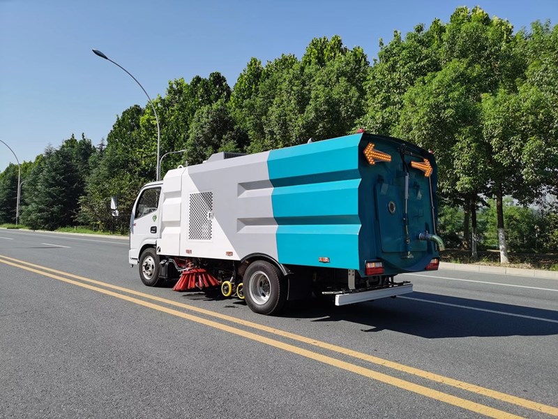 該洗掃車采用東風(fēng)多利卡國(guó)六二類底盤(pán)改裝,加裝副發(fā)動(dòng)機(jī)、風(fēng)機(jī)、清水箱、垃圾箱、左右立掃、掃盤(pán)降塵系統(tǒng)、左右高壓側(cè)噴高、吸盤(pán)內(nèi)置高壓主噴桿、氣動(dòng)系統(tǒng)、液壓系統(tǒng)、專用裝置電控系統(tǒng)和副車架等改裝而成。
