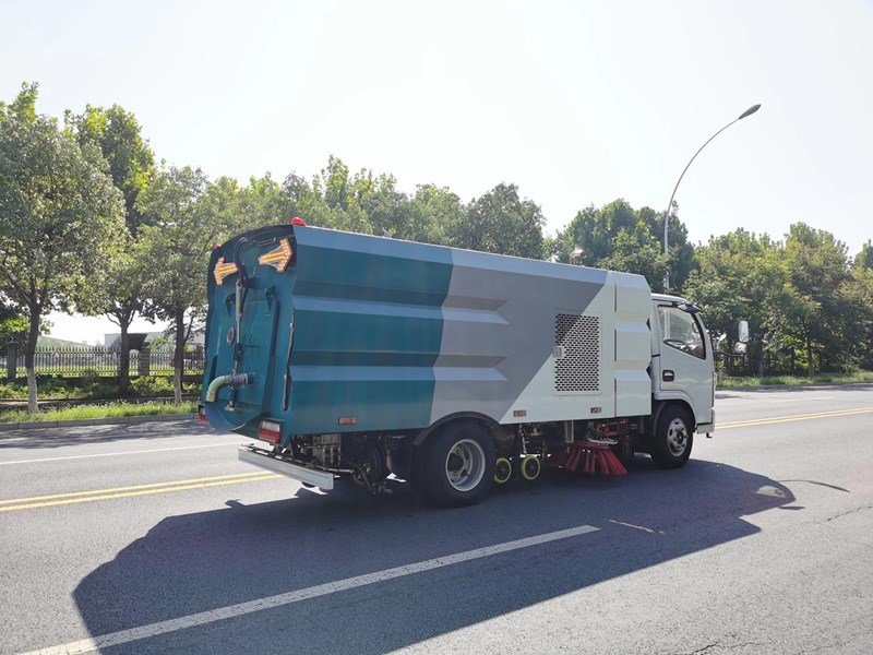 ● 清水箱和垃圾箱分體布置,有效空間利用最大化,一次連續(xù)作業(yè)時(shí)間長(zhǎng)。同時(shí)在作業(yè)過(guò)程中可通過(guò)污水排放裝置對(duì)污水進(jìn)行排放,隨時(shí)加清水繼續(xù)作業(yè);垃圾箱采用雙油缸自卸卸料,箱內(nèi)同時(shí)設(shè)有大流量高壓噴嘴,可快速?zèng)_洗垃圾箱
