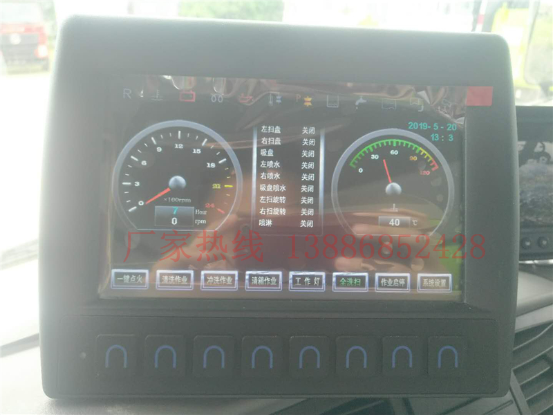 8、左右立掃為雙掃盤,掃刷上加裝噴水裝置,用于噴霧降塵。左右立掃分開控制,可實現右掃和全掃等不同的作業模式。