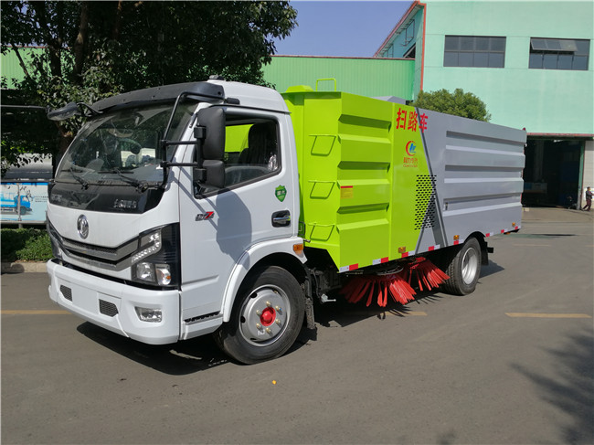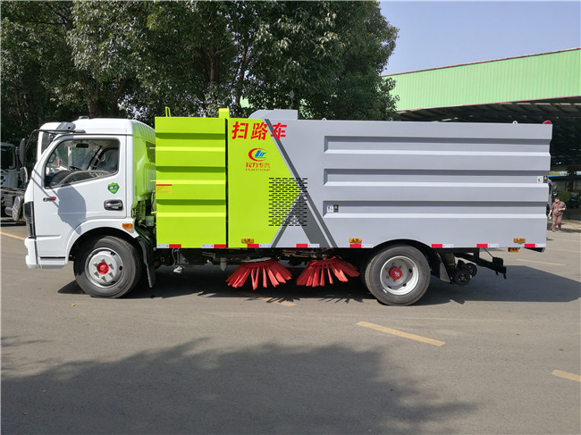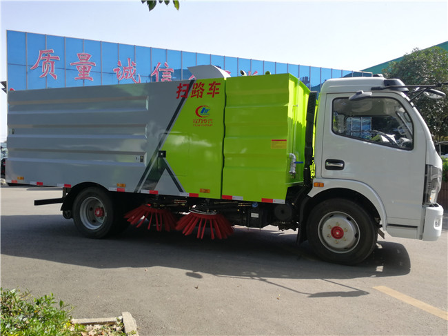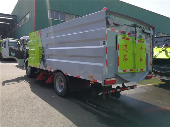 該掃路車采用東風大多利卡二類底盤改裝,加裝副發動機、風機、清水箱、垃圾箱、左右立掃、掃盤降塵系統,液壓系統、專用裝置電控系統和副車架等改裝而成。