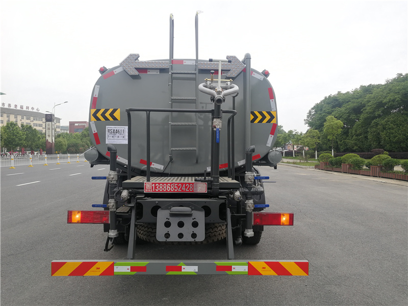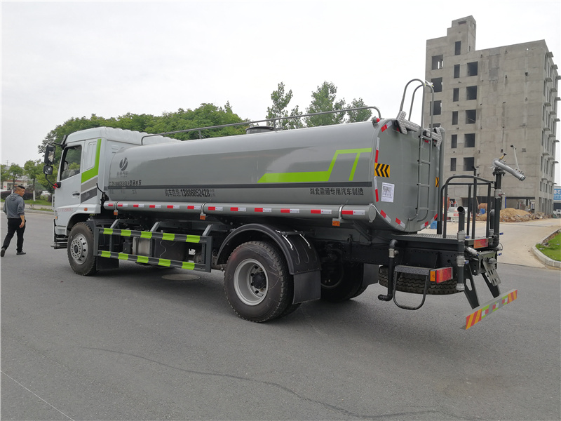 東風華神F5灑水車_華神玉柴200灑水車_華神15方灑水車_湖北盈通專用汽車有限公司,ABS型號:3631010-C2000,J ABS;ABS生產企業:東科克諾爾商用車制動系統(十堰)有限公司,焦作博瑞克控制技術有限公司;選裝描述:隨底盤選裝駕駛室,隨底盤選裝底盤布置;所用材料材質、連接方式以及后部防護裝置的主要尺寸參數(斷面尺寸和離地高度):側、后防護材料均為:Q235碳鋼,連接方式均為:螺栓連接,后部防護截面尺寸(mm):120×50,后部防護離地高度(mm):450;罐體有效容積(立方米)、罐體外形尺寸(mm):罐體有效容積:11.45立方米;罐體外形尺寸(×長軸×短軸)(mm):5200×2300×1410,4400×2350×1600;專用功能及裝置:該車主要用于城鄉園林綠化,路面噴灑,除塵和降溫;主要裝置為水罐及噴灑裝置;