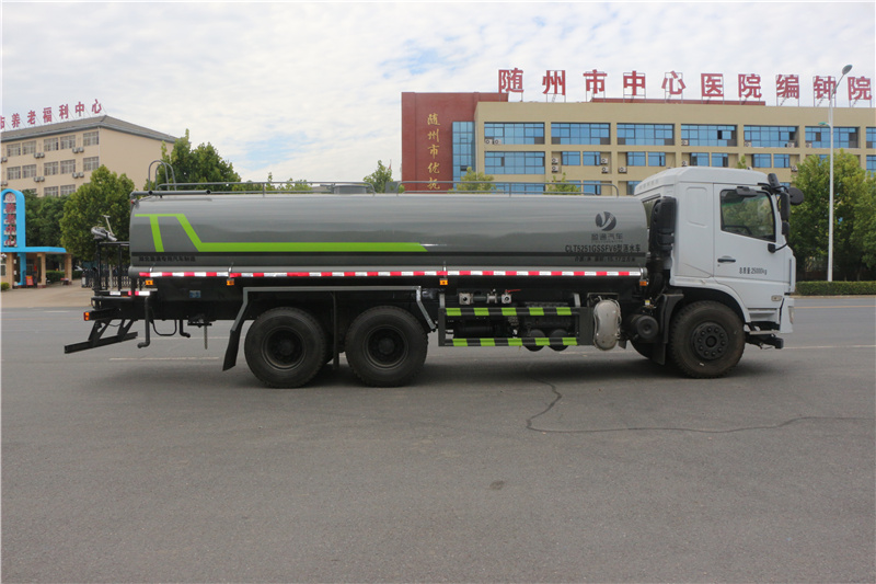 東風專底D3L灑水車_東風專底20方灑水車_湖北盈通專用汽車有限公司,該車主要用于城鄉園林綠化,路面噴灑,除塵和降溫;主要裝置為水罐及噴灑裝置;隨底盤選裝駕駛室;罐體有效容積:15.17立方米;罐體外形尺寸(×長軸×短軸)(mm):6900×2370×1360;側后防護情況:側、后防護材料均為:Q235碳鋼,連接方式均為:螺栓連接,后部防護截面尺寸(mm):120×50,后部防護離地高度(mm):460;ABS型號/生成廠家:3631010-C2000/東科克諾爾商用車制動系統(十堰)有限公司。選裝附件布局。