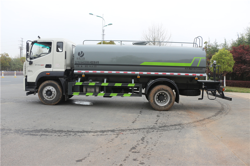 福田領航灑水車_領航ES7灑水車_福田玉柴245灑水車_領航15方灑水車價格,該車主要用于城鄉園林綠化,路面噴灑,除塵和降溫;主要裝置為罐體及噴灑裝置;罐體有效容積:11.4立方米,罐體外形尺寸(×長軸×短軸)(mm):5200×2300×1400;ABS型號為CM4XL-4S/4M,生產廠家為廣州瑞立科密汽車電子股份有限公司;隨底盤選裝駕駛室;側、后防護材料均為:Q235碳鋼,連接方式均為:螺栓連接,后部防護截面尺寸(mm):120×50,后部防護離地高度(mm):470.采用4500mm軸距。選裝限速裝置,限制最高車速80km/h