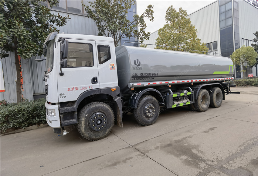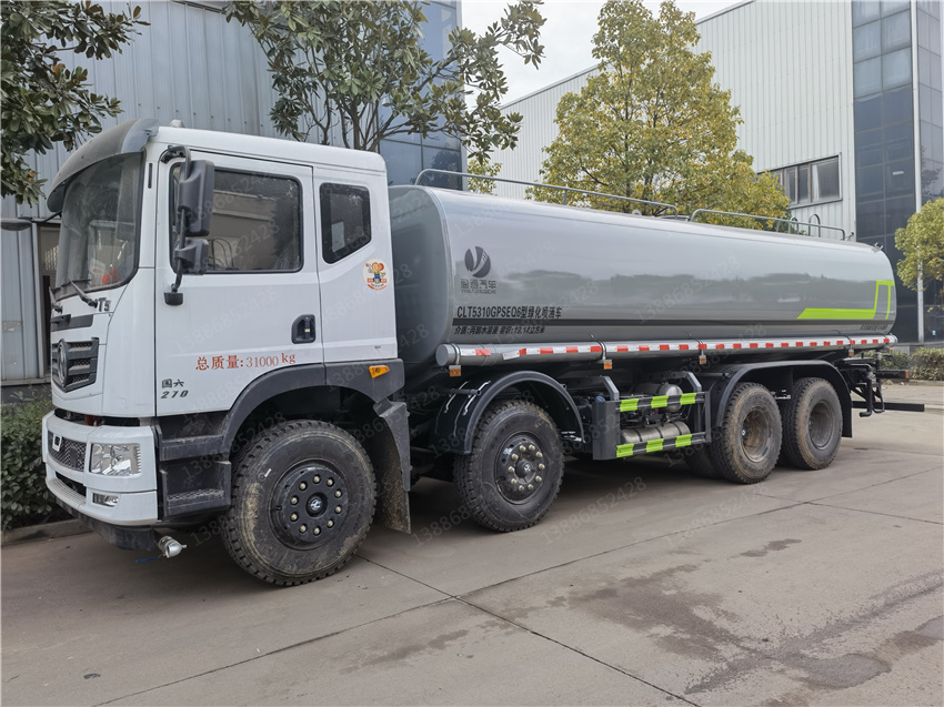 華神25方灑水車,東風華神灑水車,國六25方灑水車,前四后八灑水車價格,該車主要用于城鄉園林綠化噴灑;主要裝置為罐體及噴灑裝置:罐體總容量:20.1立方米;罐體有效容積:19.14立方米;罐體外形尺寸(×長軸×短軸)(mm):7300×2450×1650;側、后防護材料均為:Q235碳鋼,連接方式均為:螺栓連接,后部防護截面尺寸(mm):120×50,后部防護離地高度(mm):490;ABS的型號及生產廠家:3631010-C2000/東科克諾爾商用車制動系統(十堰)有限公司,J ABS/焦作博瑞克控制技術有限公司.隨底盤選裝駕駛室,選裝噴霧裝置樣式,選裝箭頭指示燈裝置,選裝自動球閥安裝位置,選裝高位花灑管道樣式,選裝水炮支架位置,選裝擋泥板樣式,僅采用軸距(mm):1850+3200+1350改裝.
