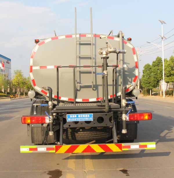 該車主要用于城鄉園林綠化噴灑作業.主要裝置為罐體及噴灑裝置.罐體總容量:10.06立方米,罐體有效容積:9.58立方米,罐體外形尺寸(長×長軸×短軸)(mm):4200×2300×1450.ABS系統型號:ABS-E;生產企業:威伯科汽車控制系統(中國)有限公司.ABS系統型號:ABS-VI.E;生產企業:廣州瑞立科密汽車電子股份有限公司;ABS系統型號:3550D-1010;生產企業:東科克諾爾商用車制動系統(十堰)有限公司.側、后防護材料均為:Q235碳鋼,連接方式均為:螺栓連接,后部防護截面尺寸(mm):120×50,后部防護離地高度(mm):470.僅采用底盤3950mm軸距改裝.選裝前部電子霧炮裝置樣式;選裝前部不帶電子霧炮裝置,當前部選裝不帶電子霧炮時,車長7450mm,7785mm,無前伸.當前部選裝帶電子霧炮時,車長7950mm,8285mm,前伸為500mm.隨底盤選裝限速裝置,最高車速(km/h)為90.后軸僅采用鋼板彈簧懸架. |
