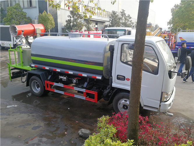 6、灑水車前噴頭位置較低,靠近地面,噴灑壓力較大,可用于沖洗路面;后噴頭位置較高(灑水車后噴頭一般左右各安裝一個),灑水面較寬,可用于公路施工灑水,使用后噴頭時,應將前噴管關閉;使用可調噴頭灑水時,灑水寬度可根據需要調整。灑水寬度越寬,中間重疊量越少,灑水密度越均勻。