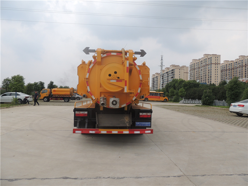 東風12方清洗吸污車,多利卡12方疏通吸污車,管道疏通車,市政下水道清理車,高壓清洗吸污車,ABS型號:ABS/ASR-24V-4S/4M;ABS生產企業:襄陽東風隆誠機械有限責任公司;選裝描述:隨底盤選裝駕駛室;側、后防護材料均為:Q235碳鋼,側防護連接方式為:螺栓連接,后防護連接方式為:焊接連接,后部防護截面尺寸(mm):120×50,后部防護離地高度(mm):420;罐體外形尺寸(直段長×直徑)(mm):4300×1500(前部1000mm為清水罐,后部3300mm為污水罐)。邊掛清水罐尺寸(××)(mm):4150×600×1060;污水罐總容量:5.77立方米,污水罐有效容積:5.5立方米,介質:液態污物,密度800千克/立方米;清水罐總容量:4.62立方米,清水罐有效容積:4.4立方米,介質:,密度1000千克/立方米;專用功能及裝置:該車用于下水道排污及疏通,專用裝置:罐體及清洗吸污裝置;其他說明:卸料方式:舉升后卸;清水罐和污水罐為獨立罐體,清洗功能時用清水罐,吸污功能時用污水罐,污水罐和清水罐不可同時滿載;選裝燃油箱,電瓶,尿素罐,儲氣筒左右安裝位置。選裝限速裝置時最高車速為:89km/h。選裝左右及后部樣式。