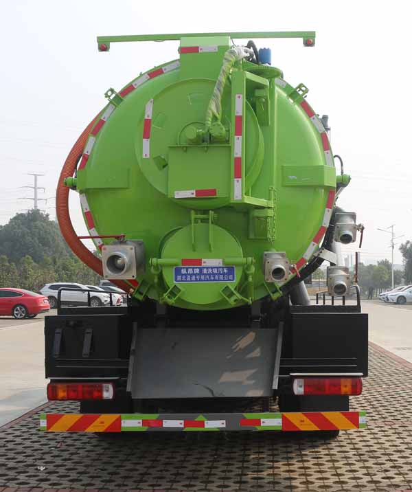 福田奧鈴17方清洗吸污車,奧鈴大黃蜂疏通吸污車,管道疏通車,市政下水道清理車,高壓清洗吸污車,該車主要用于下水道系統的清理和疏通工作;主要裝置為罐體及清洗吸污裝置總成;罐體尺寸為(總長×直徑)(mm):5650×2000(前部含封頭長2550mm為清水罐,后部含封頭長3100mm為污水罐);污水罐總容量:7.9立方米;有效容積:7.52立方米;介質:液態污物,清水罐總容量:6.32立方米,有效容積:6.02立方米,介質:;兩罐獨立,且不能同時滿載,清洗功能時用清水罐,吸污功能時用污水罐,兩罐不能同時使用.側、后防護材料均為:Q235碳鋼,連接方式均為:螺栓連接,后部防護截面尺寸(mm):120×60,后部防護離地高度(mm):470;卸料方式為舉升后卸式,ABS系統型號:ABS-VI.E;生產企業:廣州瑞立科密汽車電子股份有限公司.ABS系統型號:ABS-E;生產企業:威伯科汽車控制系統(中國)有限公司,ABS系統型號:3550D-1010;生產企業:東科克諾爾商用車制動系統(十堰)有限公司.采用4800mm軸距.選裝左側樣式;隨底盤選裝限速裝置,限速90km/h.選裝尿素罐位置,選裝電瓶位置。選裝罐體頂部無護欄裝置,選裝側面無罐體加強筋樣式,選裝后部吸污口樣式。